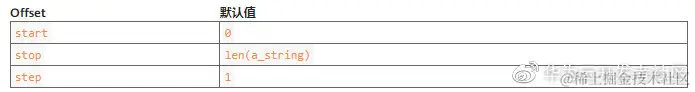 这里,start表示切片中第一个字符stop的索引,同时保存停止切片操作的索引。第三个偏移量step允许您决定切片在每次迭代中将跳过多少个字符。