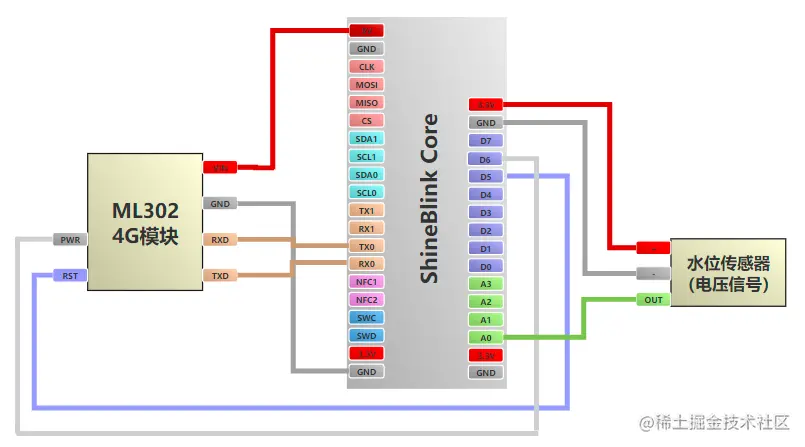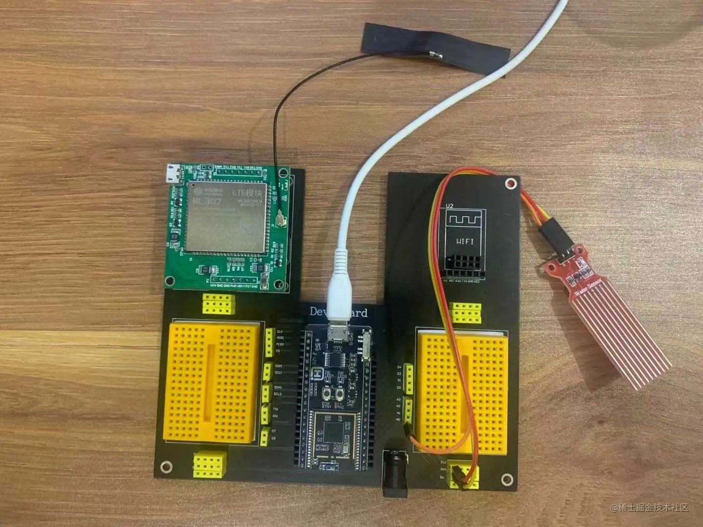 远程水位监测基于水位传感器测量水位的深浅,并将水位传感器输出的电压值通过4G模组上传至机智云,这样就可以使用手机App或者网页Web端来远程查看当前的水位的深浅。