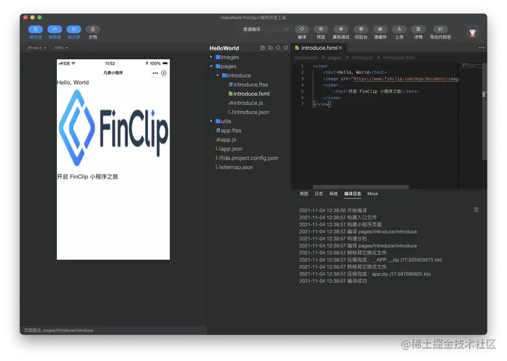 考虑到本文的主要目标是带领各位读者完成一个完整小程序的制作过程。 Fxml 的代码逻辑与 HTML 的代码逻辑几乎一致,js 文件也有其相对应的编写方法,Ftss 的代码逻辑与 CSS 样式代码逻辑几乎一致,因此在本文中则不再赘述。如果想了解其中的各种延伸内容,可以点击下方的扩展链接,或者加入 FinClip 的开发者社群进行沟通: