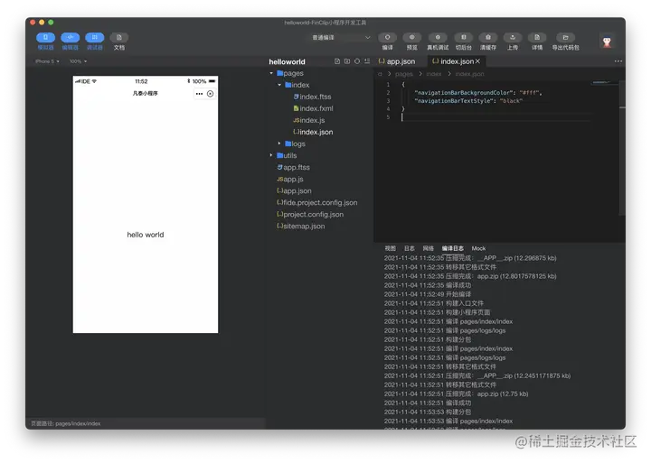 如何对某个页面进行单独配置呢?让我们打开对应的页面目录(如 「pages-index」),修改目录中的 index.json 文件:
