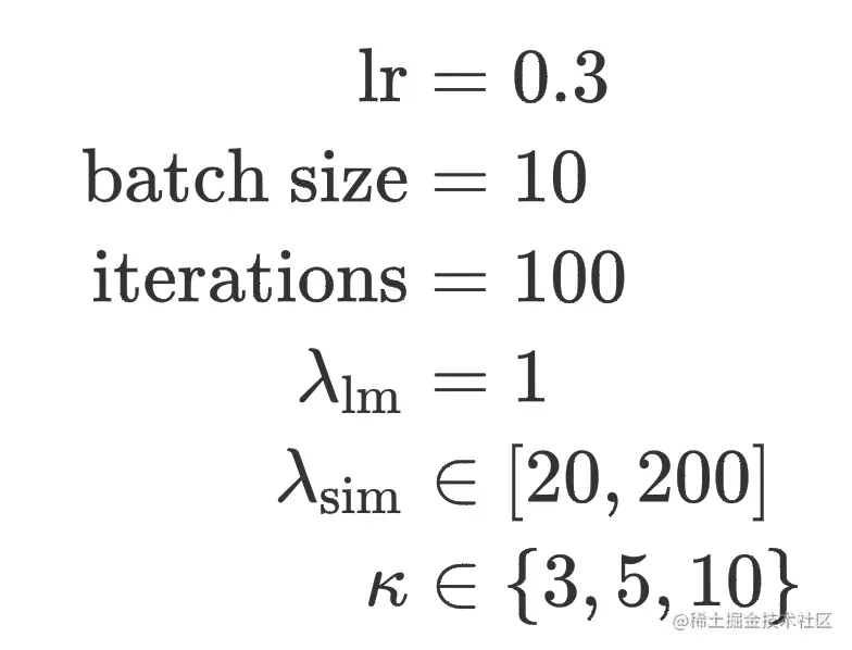 其中,均为超参数,每次迭代时从 采样一批输入,并用Adam优化器最小化。具体来说,论文中的超参数设置为