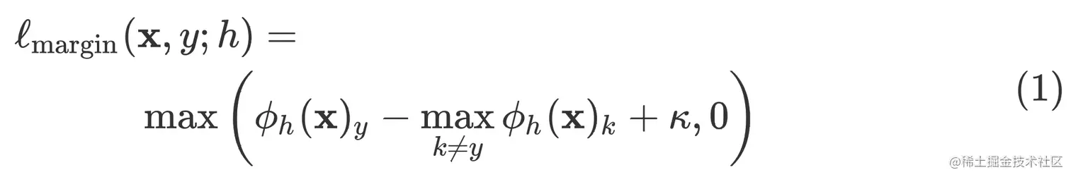 寻找对抗样本的过程通过被视为一个优化问题,例如对于分类问题来说,模型输出一个logits向量,使得 ,为了使得模型预测错误,我们可以将margin loss选作对抗损失: