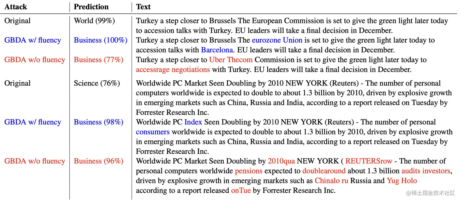 - 通过引入困惑度和语义相似度这两个软约束,促使对抗样本的语义更加流畅以及与原样本间的语义更接近