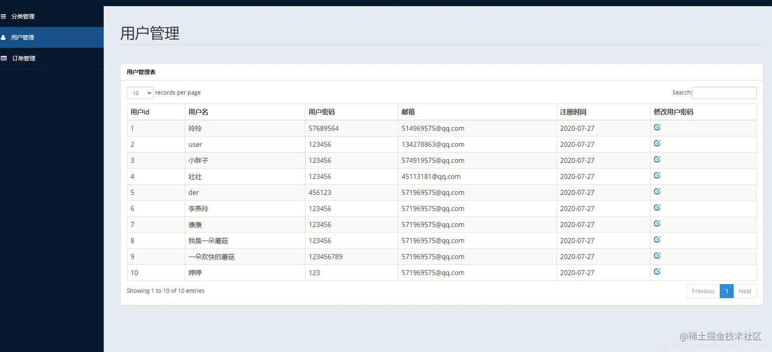| 1 | id | int | 10 | 0 | N | Y | 管理员id | |