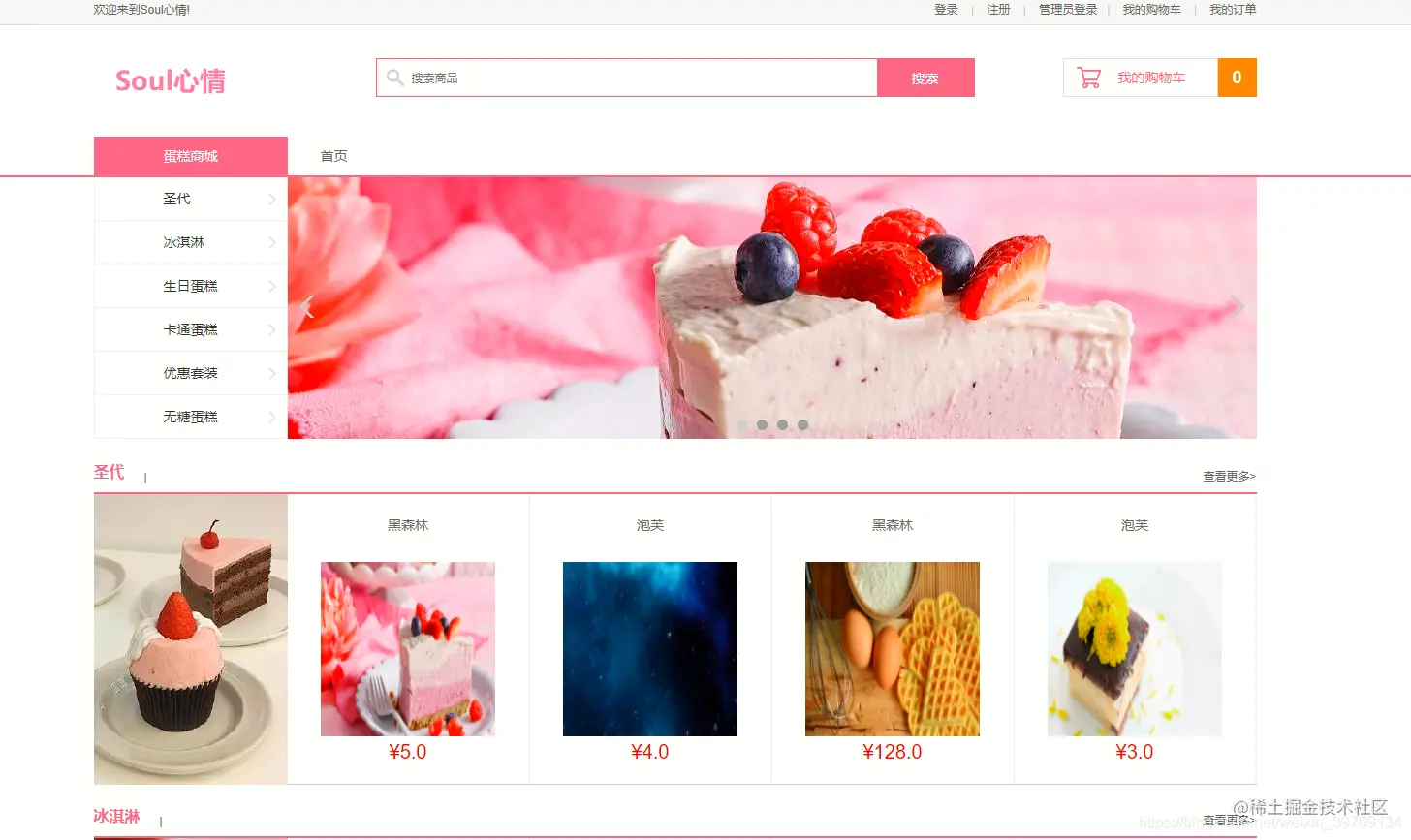 首页功能:蛋糕商品浏览 购买 加入购物车等