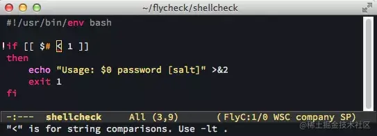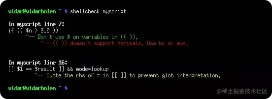 可以下载 shellcheck,并在终端命令中执行 shellcheck 命令检测脚本: