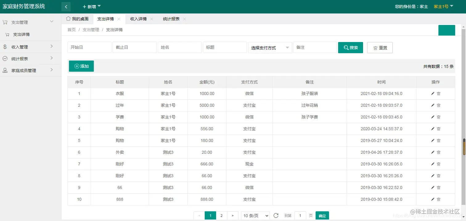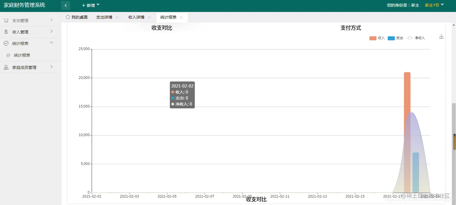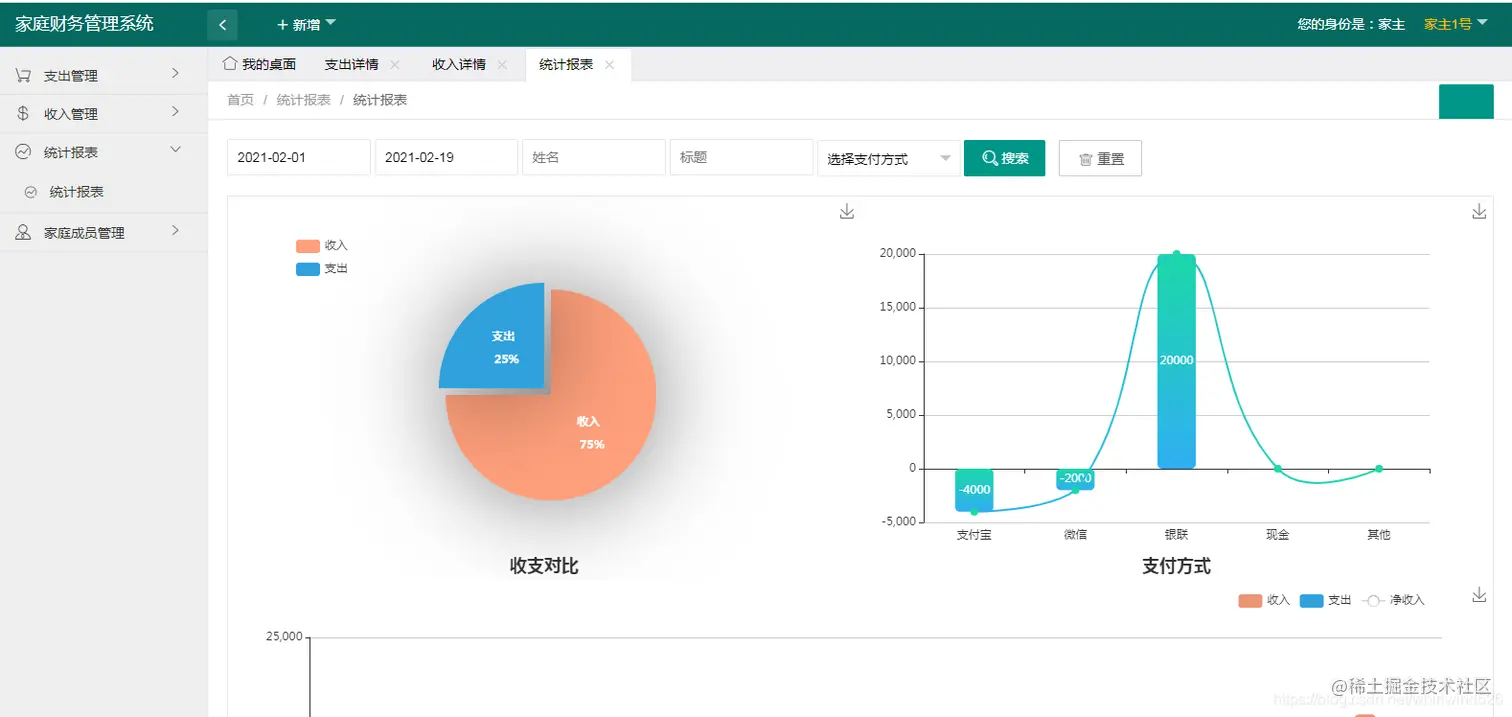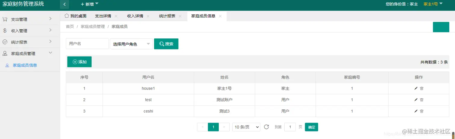 户主角色:可以管理家庭成员的收入支出,统计报表,家庭成员管理等。