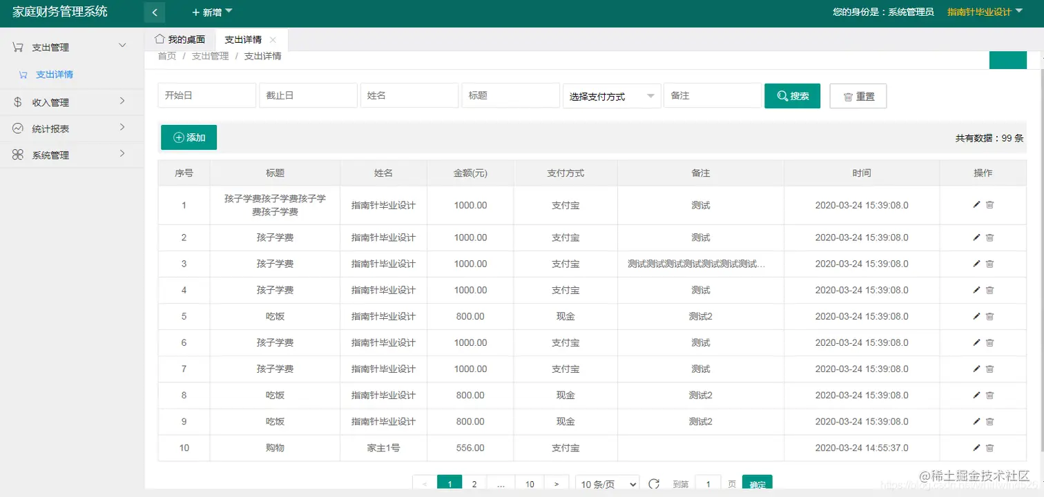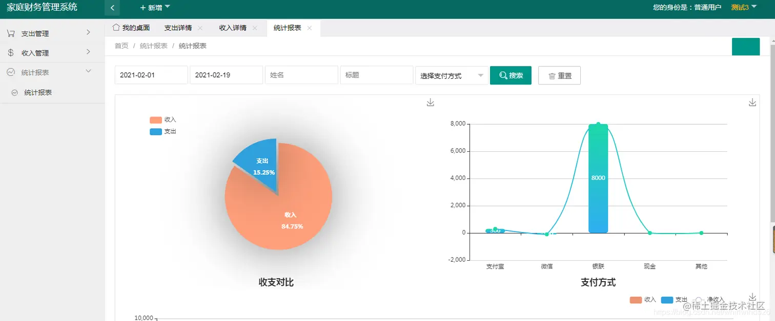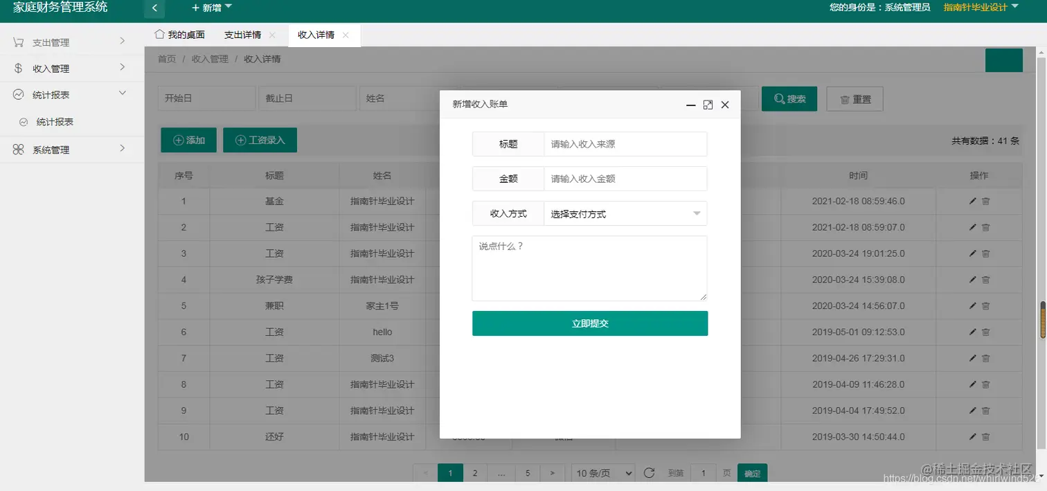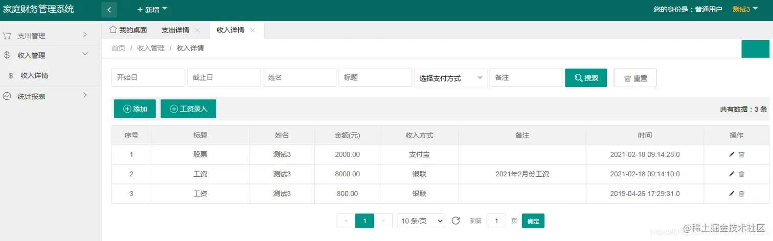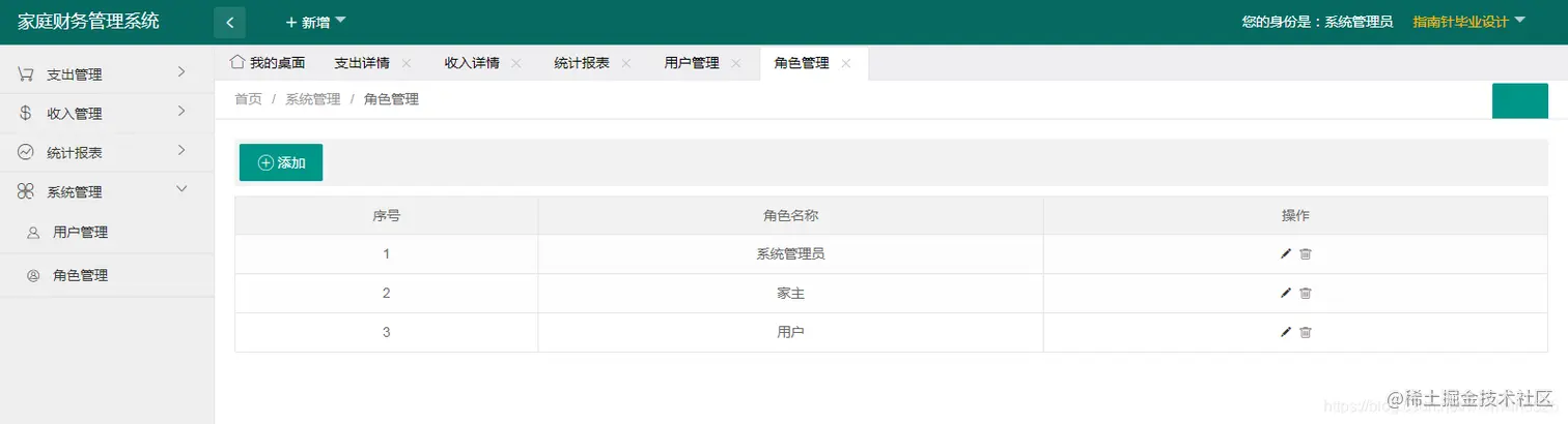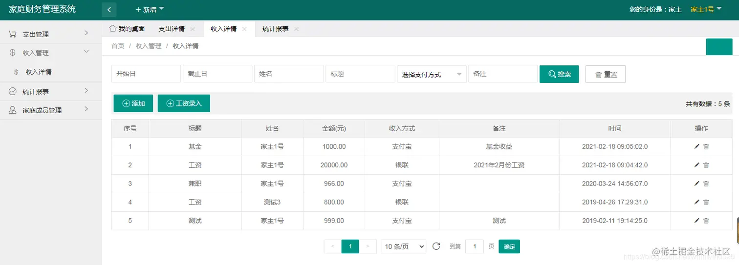 管理角色:可以管理家庭成员的收入支出,统计报表,人员管理,系统管理,角色管理等。