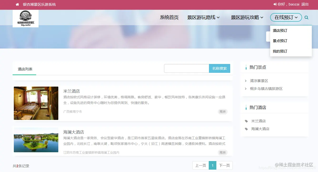 前台系统可以进行用户注册登陆,查看预定酒店,查看预定景点线路,可以发布景点攻略等操作。
