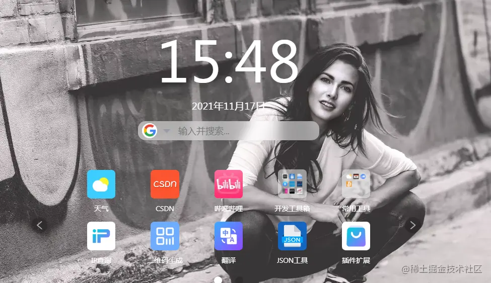 虽然CSDN网站有很多质疑,但是这款插件还是蛮好用的,首页界面清爽美观,把常用的网站和工具集成到一起,页面背景类似bing可以每天更新