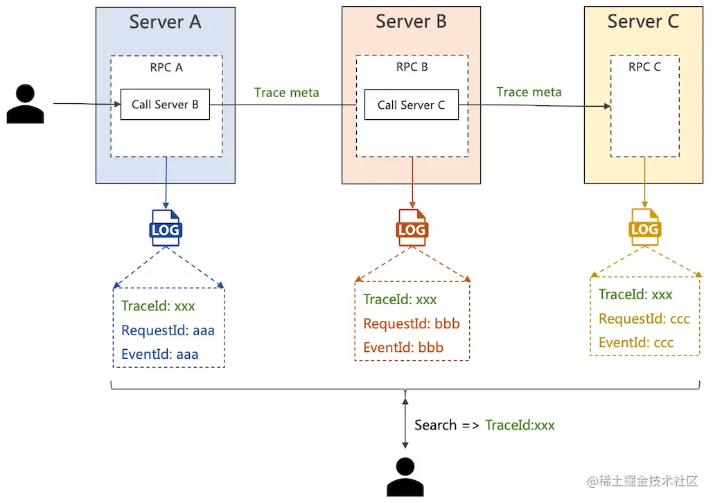 当我们没有使用例如 jaeger 调用链服务的时候,我们希望通过日志来追踪分布式系统里的 RPC 请求。