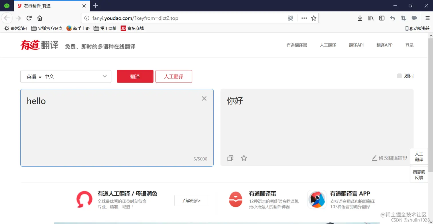 这是有道翻译的页面,仔细观察会发现,当用户每次输入一个想要翻译的词语时,页面的URL信息并不发生任何改变。这是一个典型的异步使用Ajax的技术,用JSON格式进行数据的传递。
