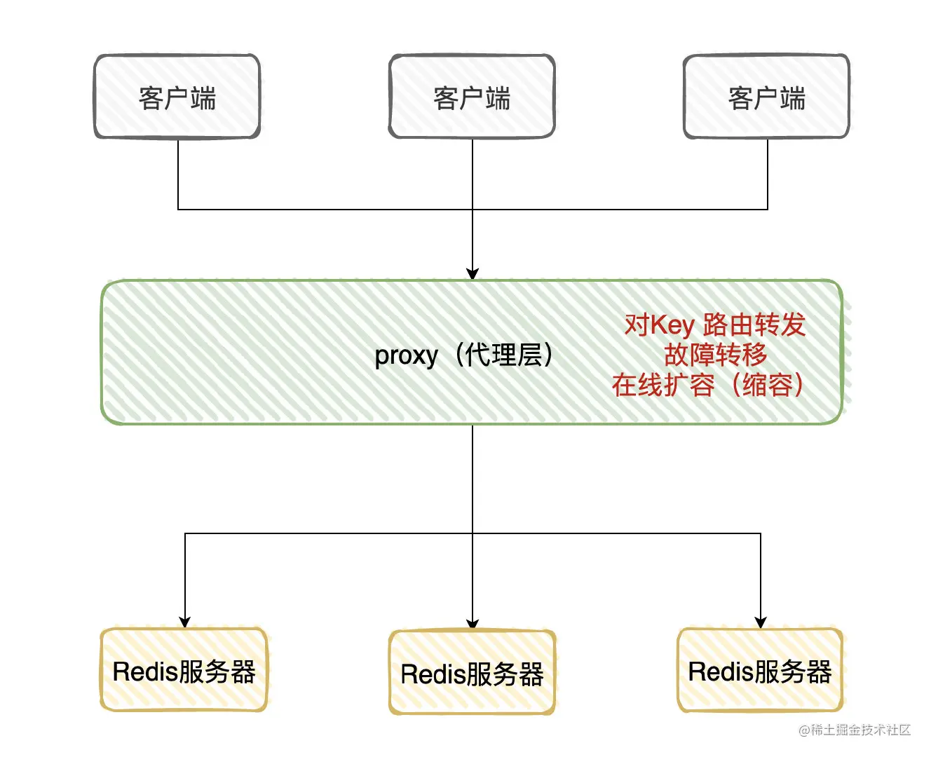 候选者:我前公司的Redis架构是「分片集群」,使用的是「Proxy」层来对Key进行分流到不同的Redis服务器上