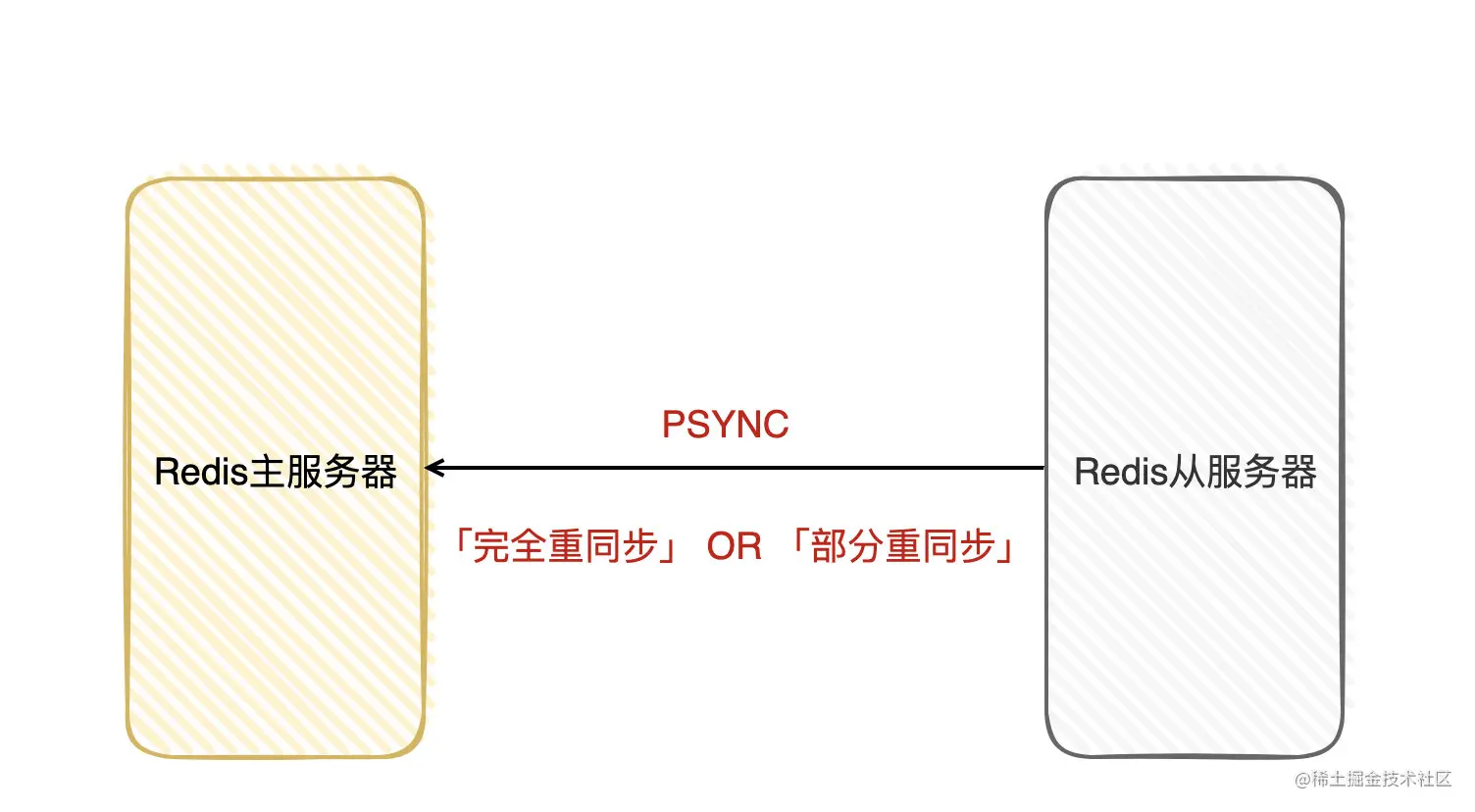 候选者:「复制」也叫「同步」,在Redis使用的是「PSYNC」命令进行同步,该命令有两种模型:完全重同步和部分重同步