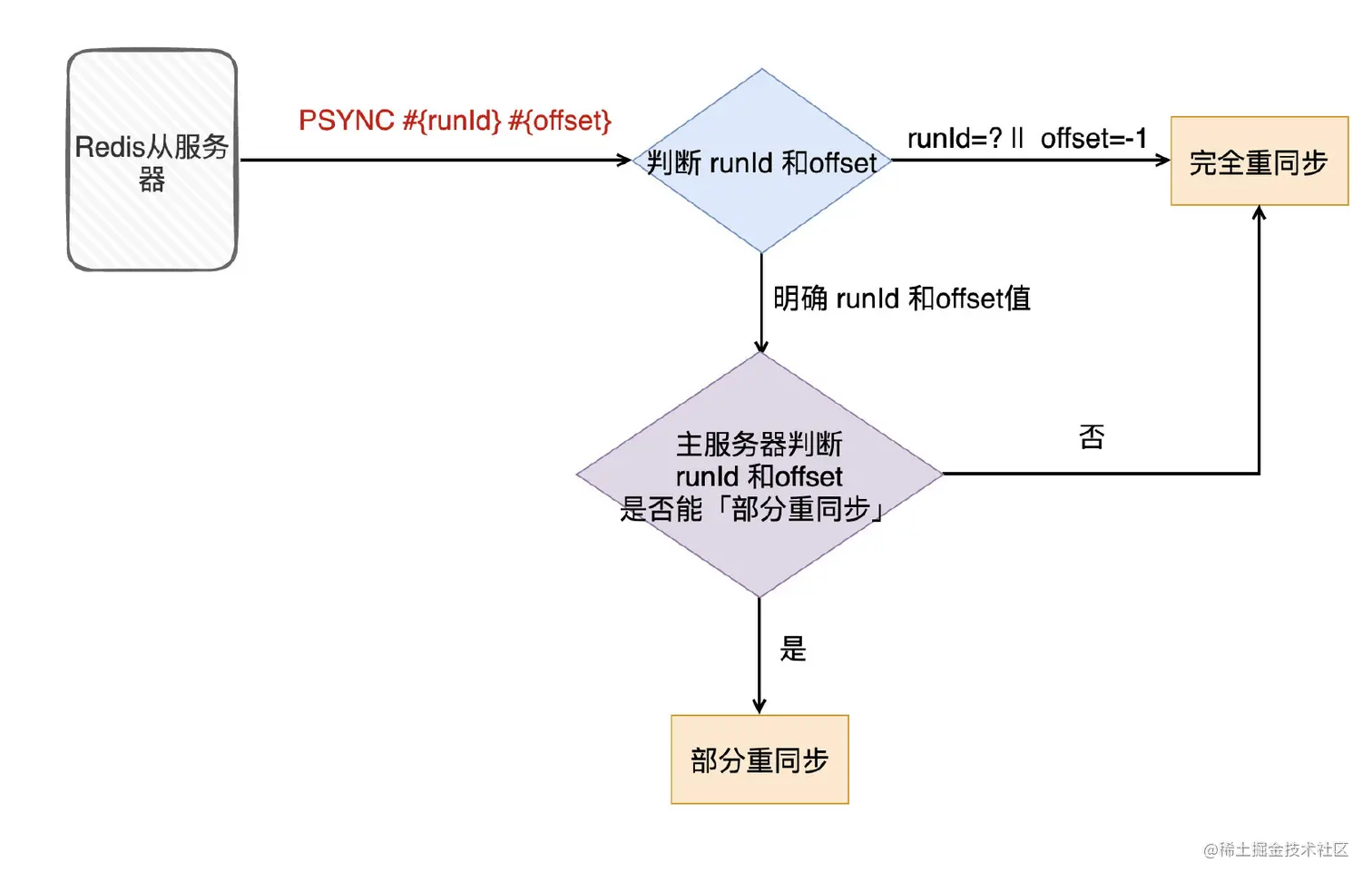 候选者:可以简单理解为:如果是第一次「同步」,从服务器没有复制过任何的主服务器,或者从服务器要复制的主服务器跟上次复制的主服务器不一样,那就会采用「完全重同步」模式进行复制