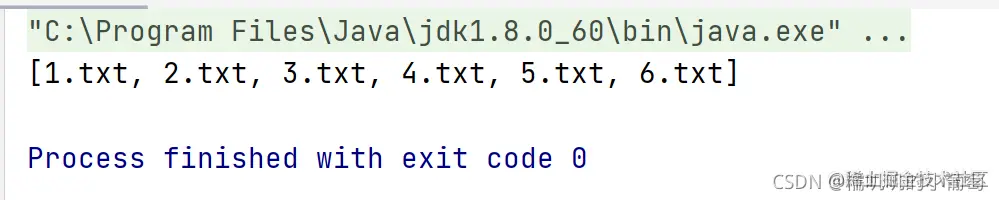 首先需要创建需要过滤的目录路径的File对象,在获取该对象的文件名集合,在获取的途中实现FilenameFilter接口,在accep方法中写入过滤条件,完成过滤。最后的输出结果为: