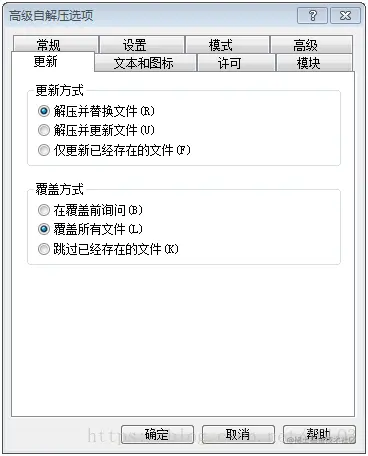 在更新中:选择覆盖方式为->覆盖所有文件(当再次安装时,会自动覆盖原来的文件,不会弹出提示询问框)