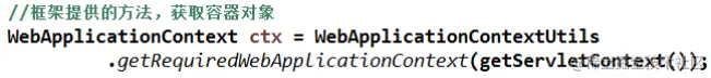 - 工具类 WebApplicationContextUtils 有一个方法专门用于从 ServletContext 中获取 Spring 容器对象:getRequiredWebApplicationContext(ServletContext sc)