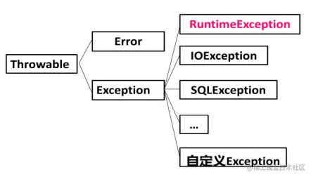 - RuntimeException 及其子类以外的异常,均属于受查异常。当然,用户自定义的 Exception 的子类,即用户自定义的异常也属受查异常。程序员在定义异常时,只要未明确声明定义的 为 RuntimeException 的子类,那么定义的就是受查异常。