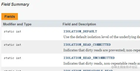 这些常量均是以 ISOLATION_开头。即形如 ISOLATION_XXX。