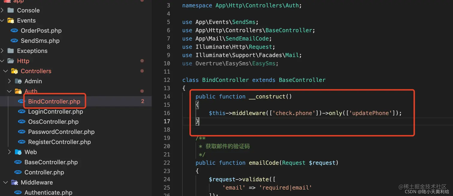 运行命令:php artisan make:middleware CheckPhoneCode
