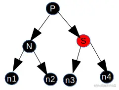 3.6 N是右子节点,S是黑色,S的其中一个子节点是红色