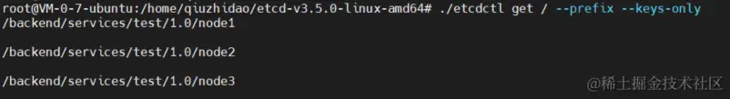 查看ETCD注册的key,并没有打印,所以判断ETCD服务挂掉:
