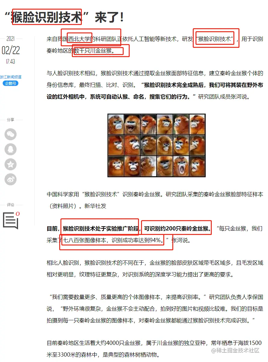 小茗同学查到了新闻报道《“猴脸识别技术”来了!》