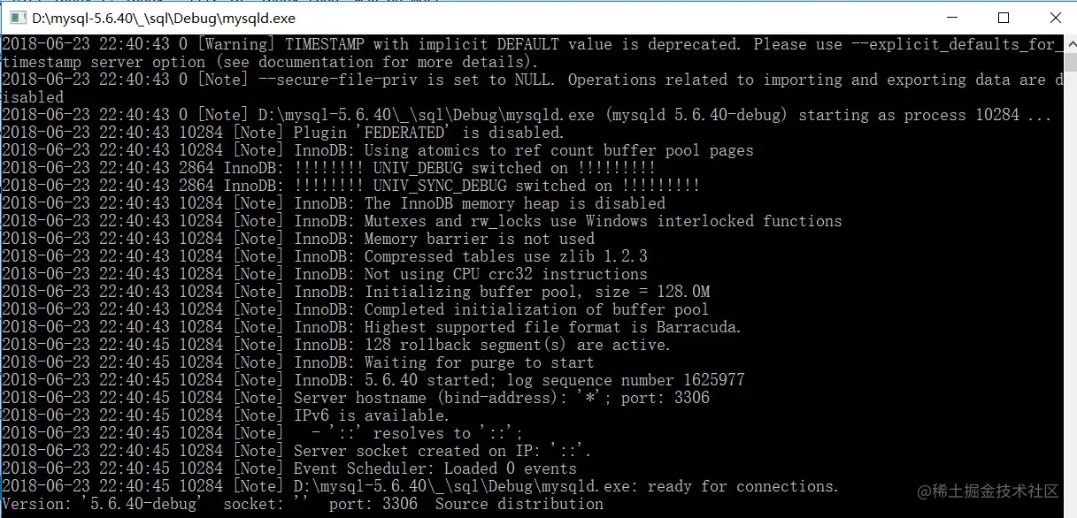 我们将 mysqld 设置为 Startup Project,然后加个命令行参数 --console,这样可以在控制台里查看打印的调试信息: