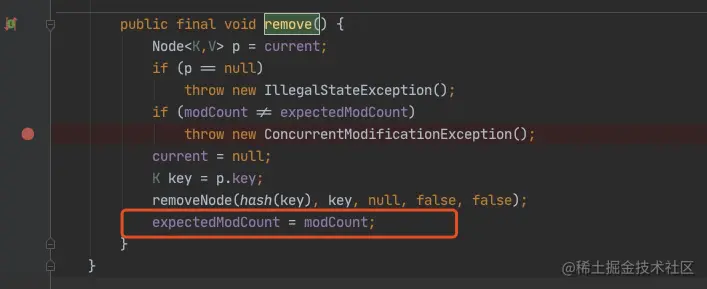 看到没,迭代器的remove()同样有强制相等的代码,然后removeNode()方法属于Map的成员方法,和List的设计方式一模一样。