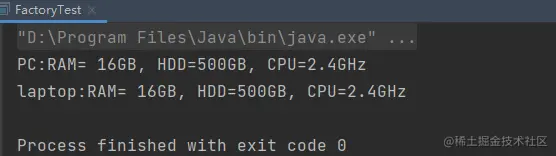Computer pc = ComputerFactory.getComputer("PC", "16GB", "500GB", "2.4GHz");