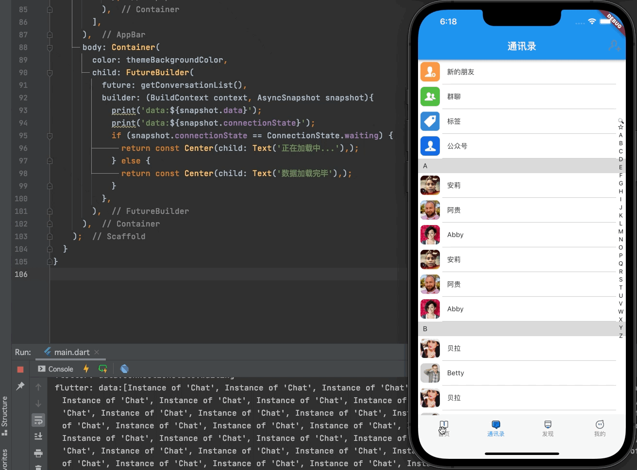 FutureBuilder依赖getConversationList方法来构建UI,我们来看一下print的打印结果: