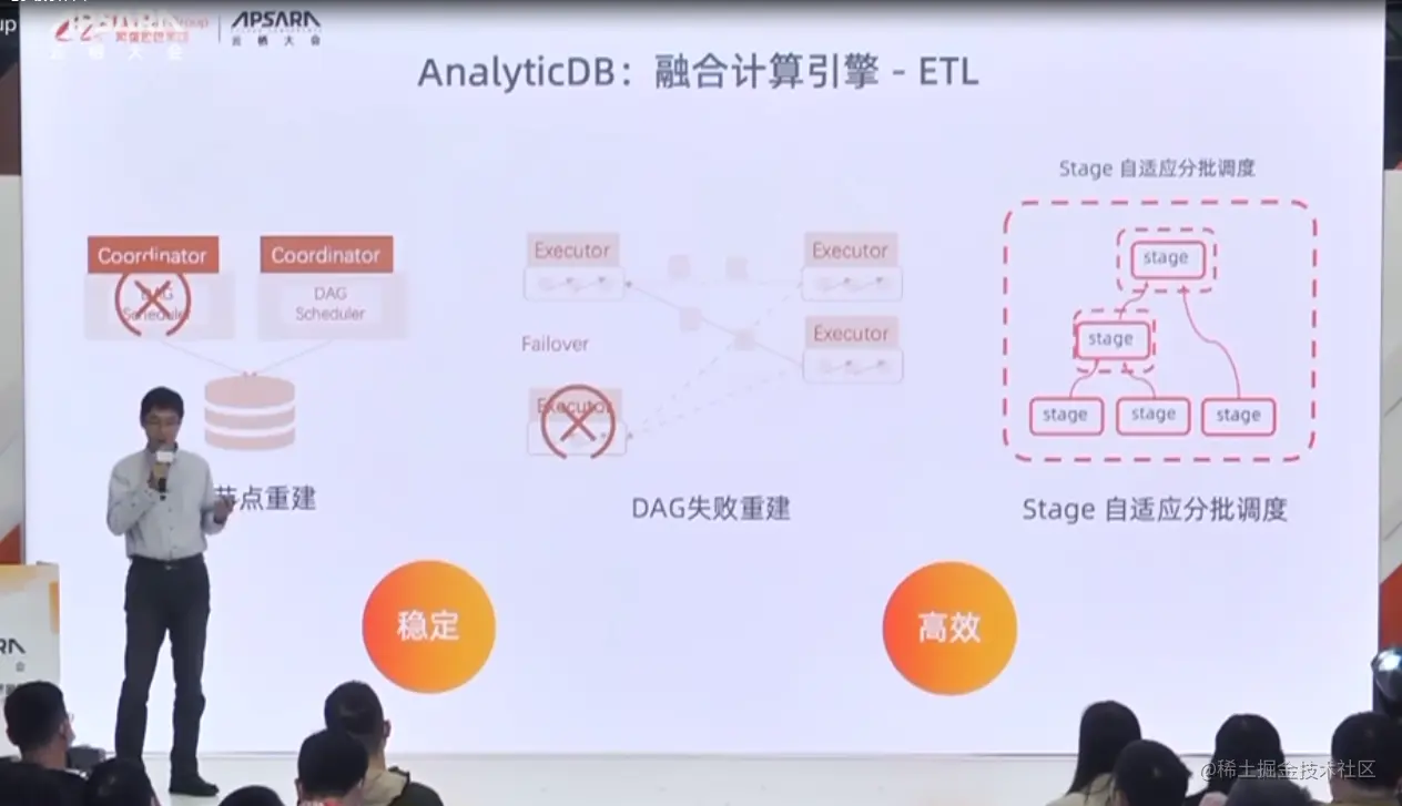 我们在一套计算系统里实现了离线和在线的融合。对于在线的查询场景,用户希望它的查询能够尽量的快。我们可以做到几十毫秒甚至几毫秒的分析型的查询结果返回。我们通过调起所有的stage,并且算子流式地、不落盘地处理数据来达到极短的延时。右边的是离线的场景,延时并不是第一优先级。用户希望离线场景查询能够在固定的时间内稳定地跑完。