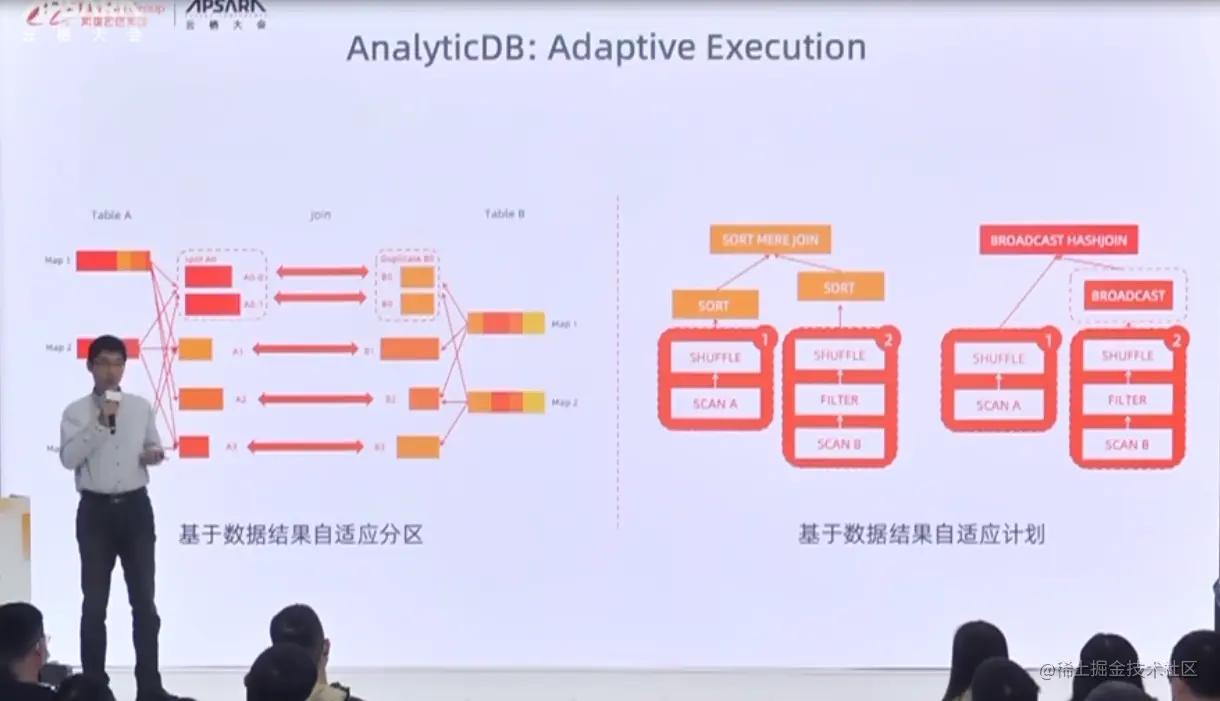Adaptive Execution解决的问题是,优化器估的再准,总是有误差的。有可能最终生成的计划和我想要生成的最优的计划是不一样的。那我们就需要在计划执行的过程当中去自适应地调整这个计划。我们实现了基于数据中间结果的自适应分区和基于数据结果的自适应计划,起到了runtime矫正计划的作用。