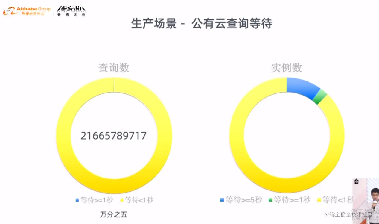 来看一下我们为什么要做弹性的功能。这是我们AnalyticDB在去年的某一周的所有的查询。我们对它进行了分析。我们发现只有万分之五的查询等待超过了1秒。但是通过另一个维度从实例级别来看,反而有大约有10%的查询超过1秒或者5秒的等待。这说明这万分之五的查询分散在不同的实例上面。说明业务有很多场景,它的查询量,在非常短的时间内会暂时超过它的预估或者期望值,造成查询排队。这时候弹性就能很好的解决这个问题。