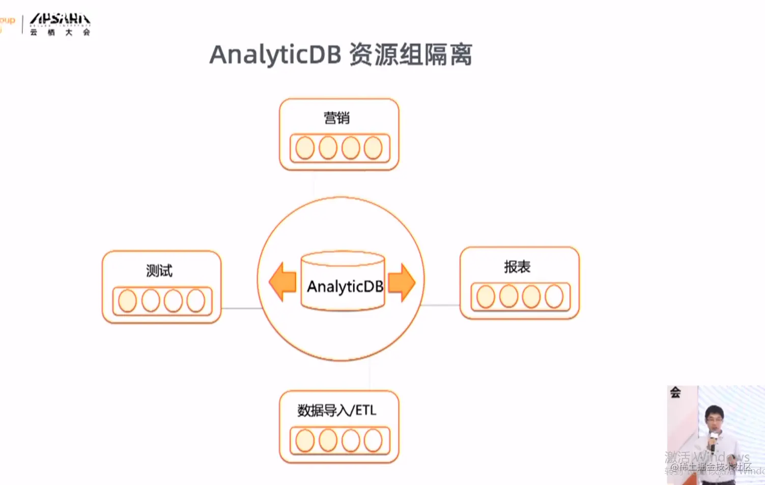 AnalyticDB提供了资源组隔离的能力。不同的资源组的资源在物理上是隔离的。比如A部门的测试查询并不会影响B部门的营销查询。