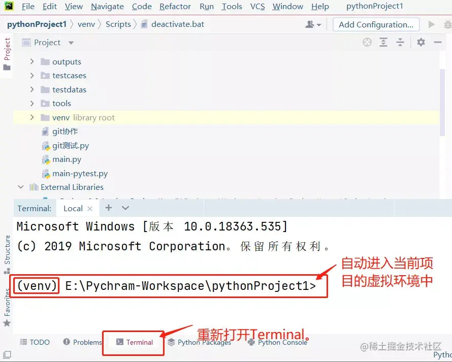 如果您的项目当前处于虚拟环境中,如何进入虚拟环境安装第三方库?