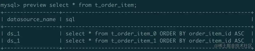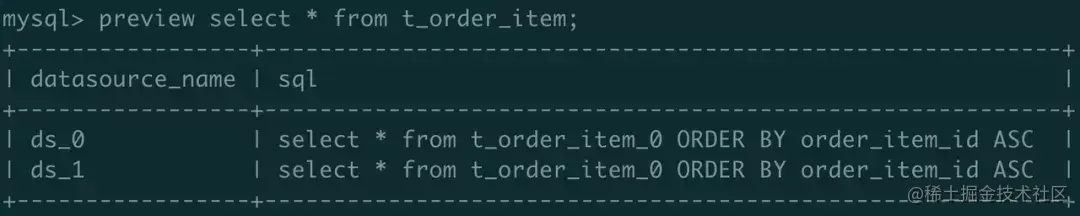 预览实际 SQL。此处以读写分离场景为例,preview 语法支持任意 SQL 语句。