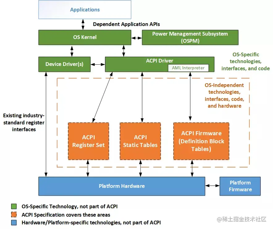 首先我们来看看,操作系统是通过什么来区分重启和关机再开机的,这里就要引入一个概念——高级配置电源管理接口(Advanced Configuration and Power Interface),简称 ACPI。