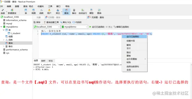 还可以通过新建查询【功能很强大】,查询里建立的,其实就是一个.sql 文件,可以属性sql操作命令,然后运行所选。