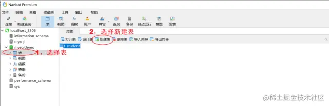 2-1, 除了可以使用DDL语句创建表格,还可以使用图形化的方式创建表格: