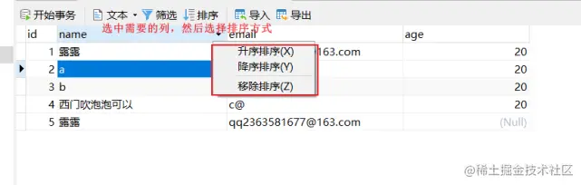 6-1、【单列排序】选中需要的列,然后选择排序的方式