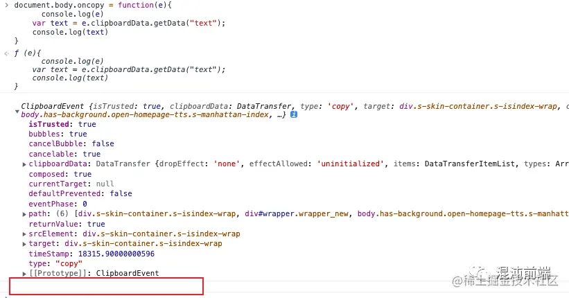 监听复制我们可以使用HTMLElement.oncopy实现: