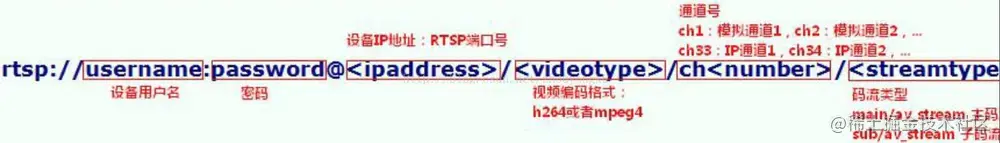 rtsp流格式:rtsp://username:password@[address]:[port]/[videotype]/ch[number]/[streamtype]
