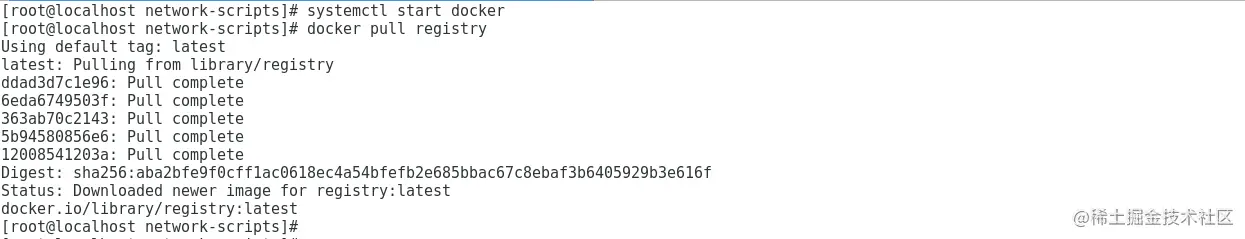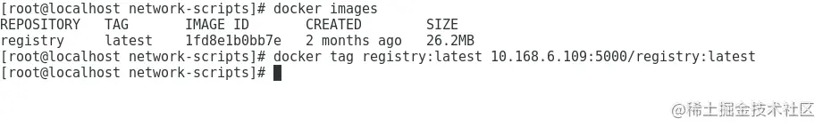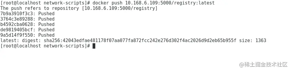 可以看见{"repositories":["registry"]},说明已经推送成功,有一个registry镜像了
