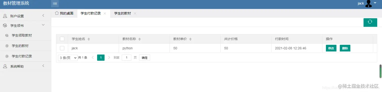 学生登陆系统: jack / 123