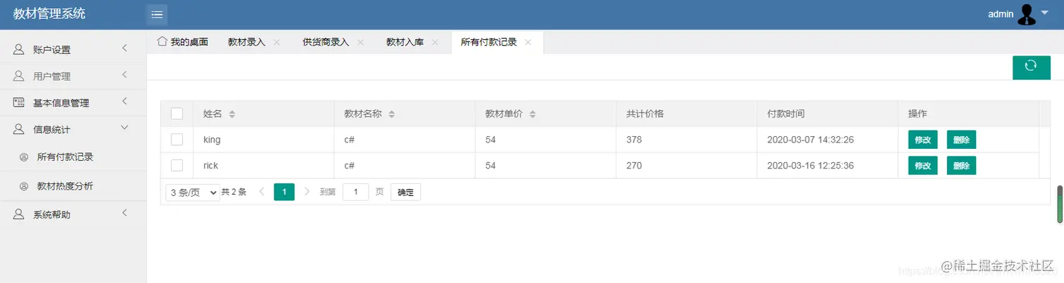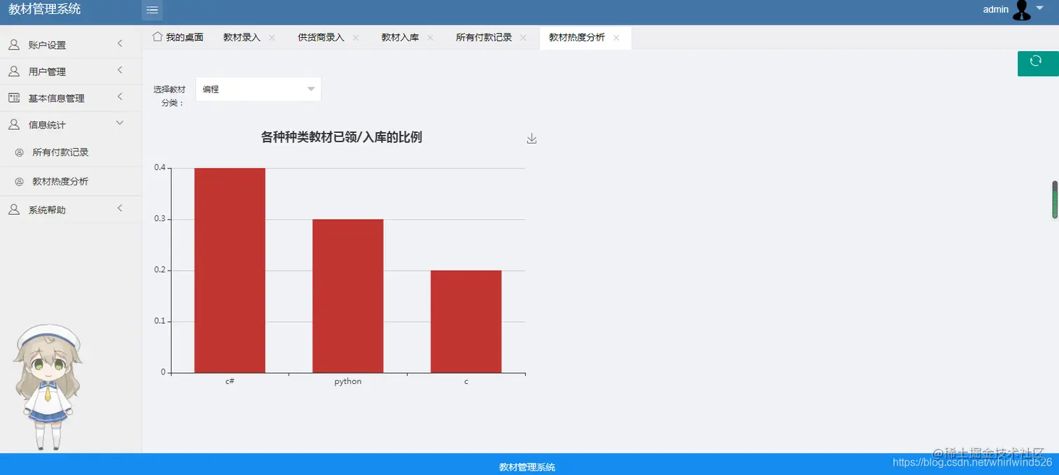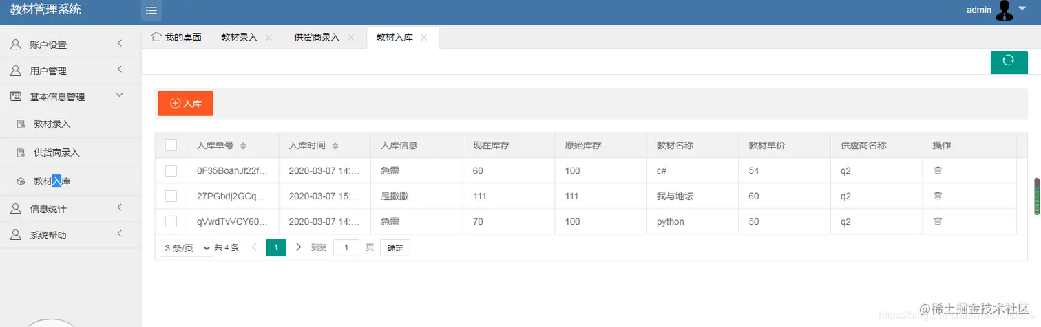 管理员可以增删改查教材、教材商、入库教材、用户(用户包括学生和教师)可以对教材商、教材进行excel的导入导出操作。