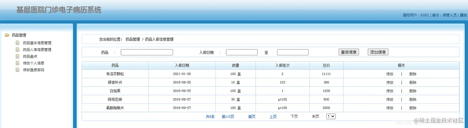 库存工作人员角色:主要管理药品相关的库存工作。