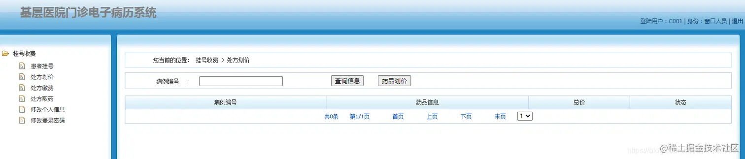 窗口工作人员角色:主要进行划价收费工作。