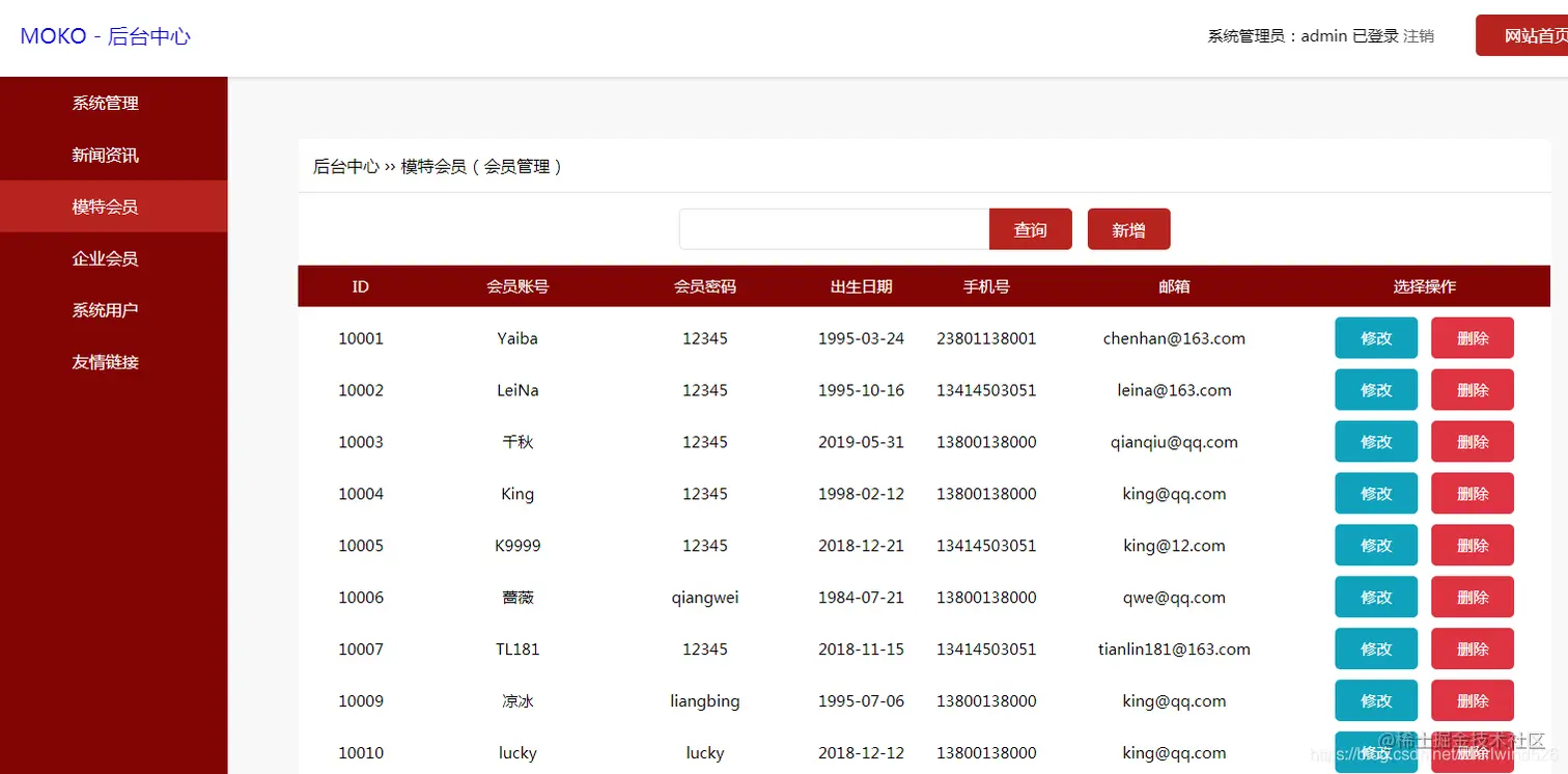 模特会员管理: